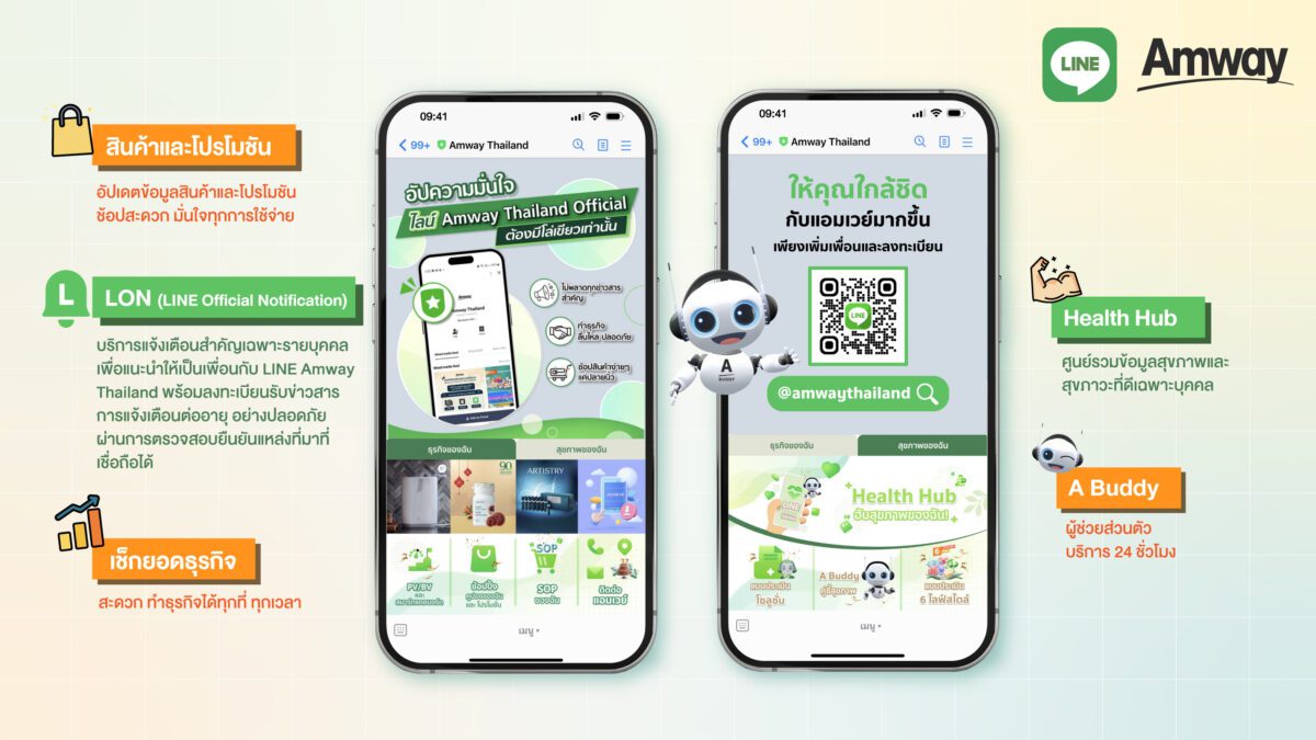 ล่าสุด แอมเวย์ ยกระดับการมอบประสบการณ์การสื่อสารและช้อปปิ้งที่สะดวก ปลอดภัย ครบครัน ไปอีกขั้น ได้ร่วมมือกับ LINE ประเทศไทย อัปเกรดศักยภาพช่องทางการสื่อสารและช้อปปิ้งผ่านบัญชี Amway Thailand Official Account เพื่อสร้างความมั่นใจให้กับผู้ใช้งานอย่างครบวงจรในการทำธุรกรรมการใช้จ่ายบนแอปฯ ด้วยระบบการจ่ายเงินผ่านเกตเวย์ที่มีความปลอดภัยสูง พร้อมเปิดใช้งานโซลูชันใหม่ LINE Official Notification หรือ LON ระบบการแจ้งเตือนผ่าน Amway Thailand Official Account อำนวยความสะดวกให้ผู้ใช้ใหม่ที่เพิ่งสมัครเป็นนักธุรกิจ/สมาชิกแอมเวย์ ในการลงทะเบียนรับบริการต่างๆ จากแอมเวย์ได้อย่างรวดเร็ว ทันใจ และแจ้งเตือนสถานะการต่ออายุสมาชิกให้อย่างครบครัน ยกระดับการสื่อสารข้อมูลสำคัญสู่สมาชิกให้ทันสมัย ปลอดภัย ไร้ข้อกังวลเรื่องมิจฉาชีพผ่านข้อความ SMS โดยผู้ใช้งาน LINE