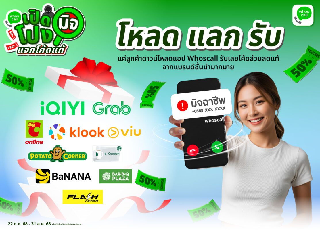 Whoscall ส่งแคมเปญ “เปิดโปงมิจ แจกโค้ดแท้” เอาใจผู้ใช้ใหม่ แจกดีลแท้จากแบรนด์ดังกว่า 100,000 โค้ด ตอกย้ำภารกิจปกป้องคนไทยจากภัยดิจิทัล