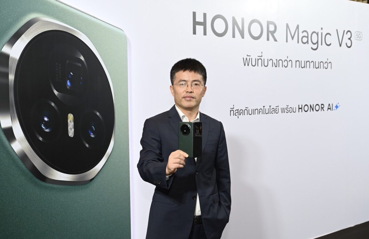 นายไมเคิล จิง ผู้อำนวยการ HONOR ประเทศไทย กล่าวว่า “เมื่อพูดถึงสมาร์ตโฟนแบบพับได้ ผู้ใช้จะรู้สึกกังวลหรือไม่มั่นใจในการตัดสินใจซื้อ เนื่องจากหลายคนมองว่าสมาร์ตโฟนแบบพับได้ไม่แข็งแรงเท่าสมาร์ตโฟนทั่วไป เนื่องจากมีกลไกการพับ ซึ่งอาจเสี่ยงต่อการแตกหักหรือเสียหายได้ง่าย รวมไปถึงคุณภาพกล้อง อายุการใช้งานของแบตเตอรี่หรือการใช้งานด้านอื่น ๆ ที่อาจไม่เป็นไปตามมาตรฐาน ส่งผลให้ตลอดระยะเวลาที่ผ่านมา HONOR จึงมุ่งมั่นพัฒนาผลิตภัณฑ์ที่มีคุณภาพสูงและเทคโนโลยีที่ล้ำสมัย เพื่อส่งมอบประสบการณ์และความพึงพอใจให้กับผู้ใช้มากที่สุด โดยล่าสุดประกาศเปิดตัว HONOR Magic V3 สมาร์ตโฟนจอพับที่ไม่เพียงแต่บางและทนทานที่สุดในโลก แต่ถูกออกแบบมาเพื่อแก้ไขทุก Pain Point ของผู้ใช้ ด้วยนวัตกรรมการออกแบบโครงสร้างหน้าจอทั้งภายในและภายนอกซึ่งใช้เทคโนโลยีวัสดุขั้นสูงที่ผ่านการทดสอบความทนทานอย่างเข้มงวด ทำให้เครื่องมีความแข็งแรงทนทานสูงสุด สามารถพับเปิดปิดได้หลายแสนครั้งโดยไม่เสื่อมสภาพ ไม่เพียงเท่านั้น HONOR Magic V3 ยังมาพร้อมกับ HONOR AI ที่ช่วยให้การถ่ายภาพและการใช้งานอื่นๆ มีประสิทธิภาพยิ่งขึ้น นอกจากนี้ ยังมีนวัตกรรมแบตเตอรี่ที่มีขนาดบางแต่ความจุสูง รองรับการใช้งานได้อย่างยาวนานตลอดวัน โดยไม่ต้องกังวลเรื่องแบตเตอรี่หมด HONOR Magic V3 จึงไม่ใช่แค่ “สมาร์ตโฟนพับได้” แต่คือ “สมาร์ตโฟนหลัก” ที่จะกลายเป็นส่วนสำคัญในชีวิตประจำวันของทุกคน ตลอดจนผู้ใช้จะได้สัมผัสประสบการณ์ใหม่ที่จะเปลี่ยนมุมมองเกี่ยวกับเทคโนโลยีไปตลอดกาล”