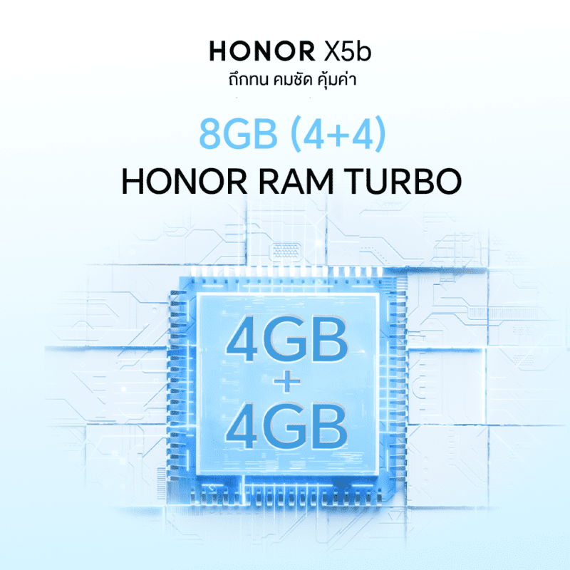 สำหรับ HONOR X5b Plus มาพร้อมพื้นที่จัดเก็บข้อมูลขนาดใหญ่ถึง 8GB (4GB+4GB)+128GB รองรับทุกความต้องการด้านความบันเทิงและการใช้งาน และช่วยให้คุณเก็บทุกความทรงจำและคอนเทนต์โปรดไว้ใกล้ตัวได้อย่างง่ายดาย