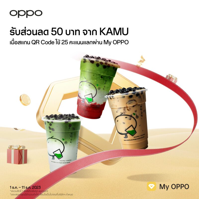 อิ่มอร่อยกับเครื่องดื่มสุดพิเศษ พร้อมรับส่วนลด 50 บาท จาก KAMU เมื่อแสกน QR Code ใช้ 25 คะแนนแลกผ่าน My OPPO