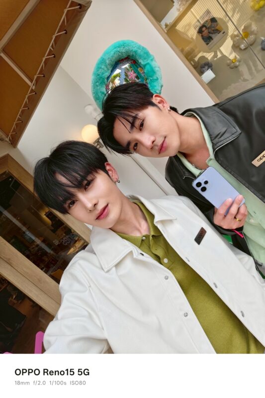 นอกจากกิจกรรมสุดพิเศษ “Ultra Wide Selfie Live Unbox” ที่ได้รับกระแสตอบรับอย่างดี และทำให้เดือนแห่งความรักปีนี้พิเศษกว่าปีไหน ๆ คู่เพื่อนซี้ “เพิร์ธ-แซนต้า” และมาสคอตสุดน่ารัก “DOMIIA” ยังอวดภาพโมเมนต์สุดน่ารักจาก OPPO Reno15 Series 5G โชว์ภาพเซลฟี่เก็บภาพทุกคนได้ครบทั้งเฟรมด้วยกล้องเซลฟี่มุมกว้างพิเศษ 50MP มาพร้อมระยะ 0.6x กว้างที่สุดในอุตสาหกรรม เพียงแค่ยืดแขนโพสท่า และได้ภาพมุมบนสุดเท่ที่ครบทั้งเมคอัพและ OOTD แถมยังเก็บภาพบรรยากาศรอบตัวได้ครบถ้วน และยังมาพร้อมมิติใหม่แห่งการตัดต่อคอลลาจสุดเทรนดี้ ทำให้ภาพโมเมนต์ดี ๆ สนุกกว่าที่เคย ด้วยฟีเจอร์ Popout ราวกับเป็นคอนเทนต์ครีเอเตอร์สุดเทรนดี้